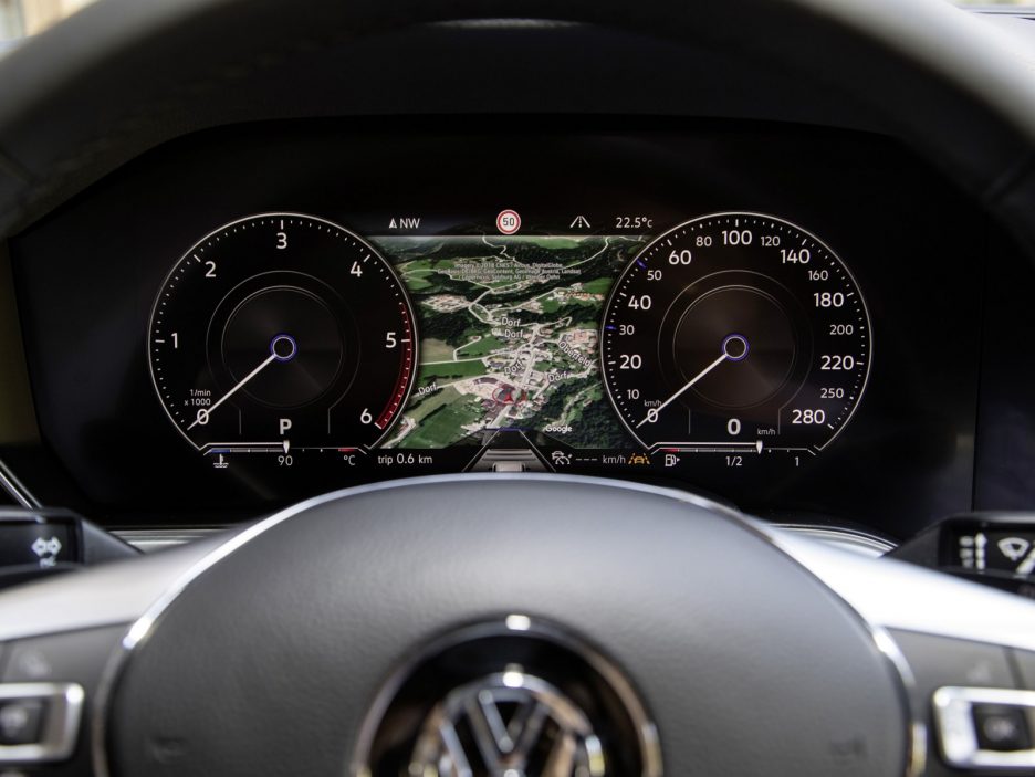 L’abitacolo è pratico (sedile posteriore scorrevole di 16 cm con schienali reclinabili su tre livelli), rifinito con cura (solo la fascia centrale in plastica dura che scorre sotto gli inserti in alluminio o legno della plancia stona un po’) e, soprattutto, molto scenografico. Il merito va all’Innovation Cockpit, di serie sull’allestimento Advanced protagonista del nostro primo contatto, caratterizzato da un cruscotto interamente digitale – l’Active Info Display da 12,3” – di fronte al guidatore e da un gigantesco touchscreen da 15” al centro che consente di comandare tutte le funzioni principali del veicolo.