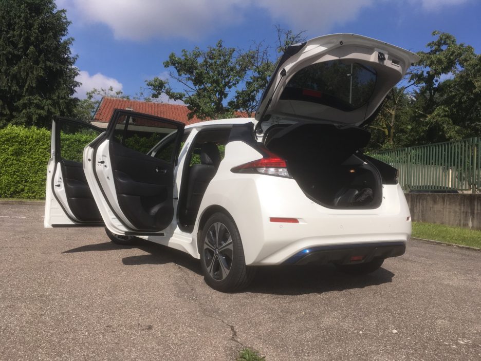 La Nissan Leaf Tekna oggetto della nostra prova su strada – la versione più cara della compatta elettrica asiatica – ha un prezzo molto alto (39.190 euro) abbinato però ad una dotazione di serie decisamente ricca: cerchi in lega da 17”, climatizzatore automatico, cruise control adattivo, fari a LED, fendinebbia, Intelligent Around View Monitor (telecamera 360°), navigatore, retrovisori ripiegabili elettricamente, radio Bose Android Auto Apple CarPlay AUX Bluetooth DAB USB, sedili con parti in pelle ed Alcantara, sensore luci, sensore pioggia, sensori di parcheggio anteriori e posteriori, specchietti e sedili anteriori e posteriori riscaldabili.