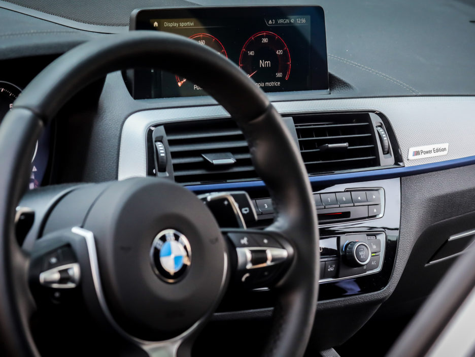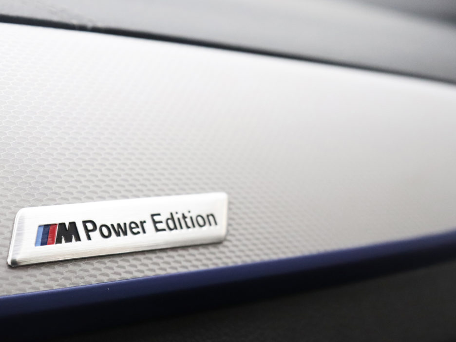 Il nuovo allestimento M Power Edition è completato da dettagli interni dal design esclusivo: la pedaliera sportiva in alluminio MPerformance, le calotte in nero lucido, gli esclusivi tappetini con cuciture blu e ricamo M Power e il badge M Power Edition.
