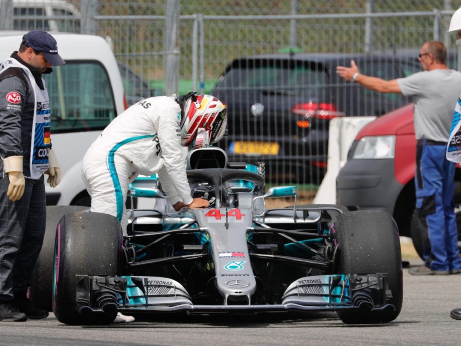 Credits: epaselect epa06902545 British Formula One driver Lewis Hamilton (2L) of Mercedes AMG GP stands next to his vehicle after technical problems during the qualifying of the 2018 Formula One Grand Prix of Germany at Hockenheim Ring circuit in Hockenheim, Germany, 21 July 2018. The 2018 Formula One Grand Prix of Germany will take place on 22 July 2018. EPA/RONALD WITTEK