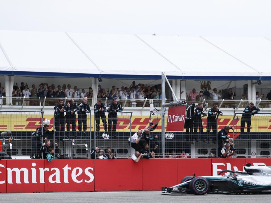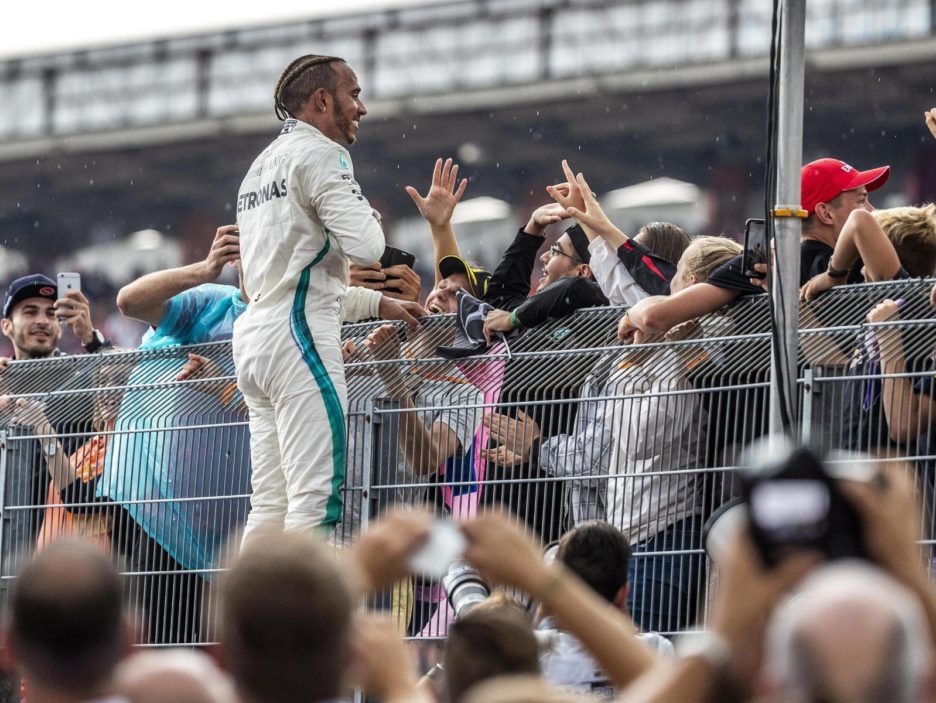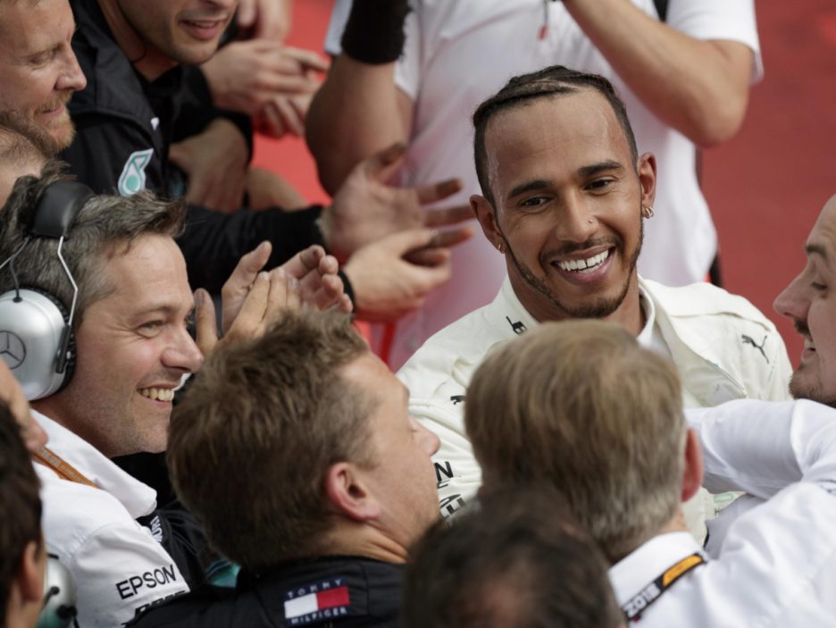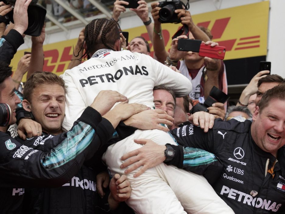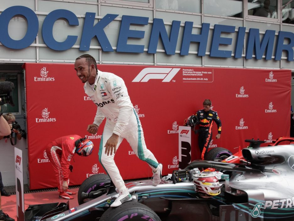 Credits: epaselect epa06904625 British Formula One driver Lewis Hamilton of Mercedes AMG GP celebrates with his team members after winning the 2018 Formula One Grand Prix of Germany at the Hockenheimring in Hockenheim, Germany, 22 July 2018. EPA/VALDRIN XHEMAJ