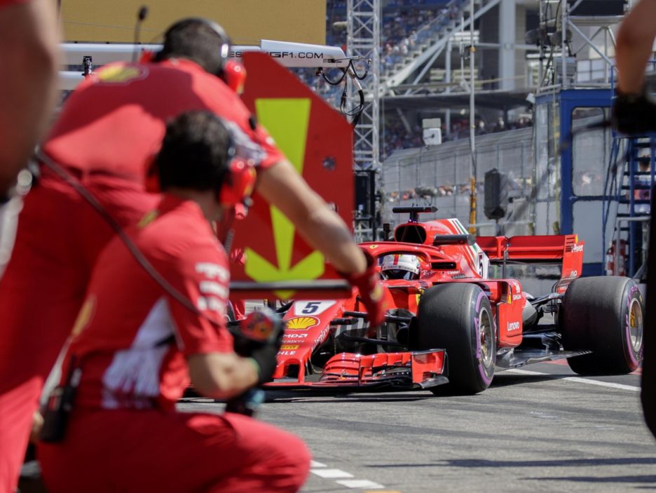 Credits: epa06900740 German Formula One driver Sebastian Vettel of Scuderia Ferrari practices a pit stop during the second practice session at the Hockenheimring in Hockenheim, Germany, 20 July 2018. The 2018 Formula One Grand Prix of Germany will take place on 22 July. EPA/VALDRIN XHEMAJ