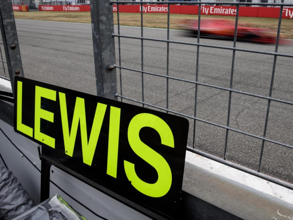 Credits: epa06902815 A sign with name of British Formula One driver Lewis Hamilton of Mercedes AMG GP is seen at the pit wall as German Formula One driver Sebastian Vettel of Scuderia Ferrari in action during the qualifying session at the Hockenheimring in Hockenheim, Germany, 21 July 2018. The 2018 Formula One Grand Prix of Germany will take place on 22 July. EPA/VALDRIN XHEMAJ
