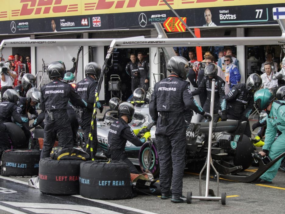 Credits: epa06904762 Finish Formula One driver Valtteri Bottas of Mercedes AMG GP in the pit stop during the 2018 Formula One Grand Prix of Germany at the Hockenheimring in Hockenheim, Germany, 22 July 2018. EPA/VALDRIN XHEMAJ / POOL