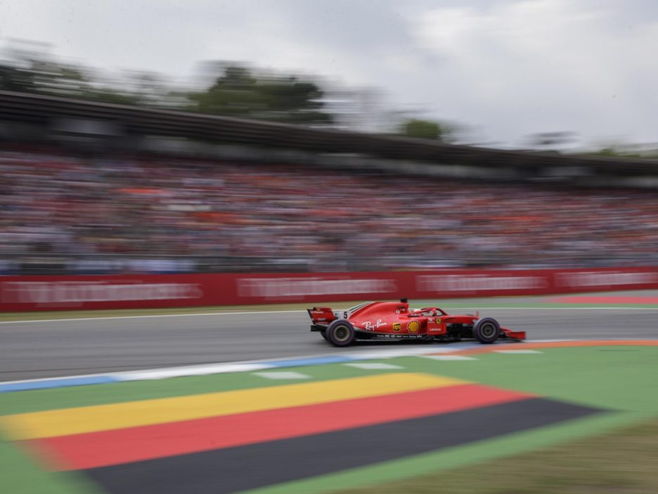 Credits: epa06904785 German Formula One driver Sebastian Vettel of Scuderia Ferrari in action during the 2018 Formula One Grand Prix of Germany at the Hockenheimring in Hockenheim, Germany, 22 July 2018. EPA/VALDRIN XHEMAJ