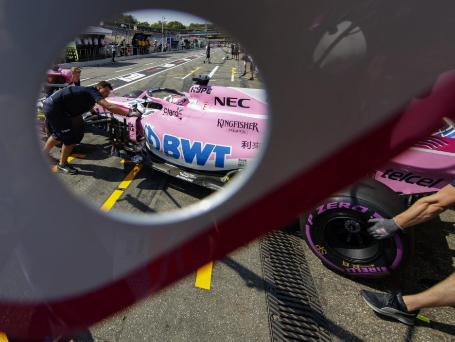 Credits: epa06900737 Mechanics push the car of Mexican Formula One driver Sergio Perez of Sahara Force India F1 Team during the second practice session at the Hockenheimring in Hockenheim, Germany, 20 July 2018. The 2018 Formula One Grand Prix of Germany will take place on 22 July. EPA/VALDRIN XHEMAJ
