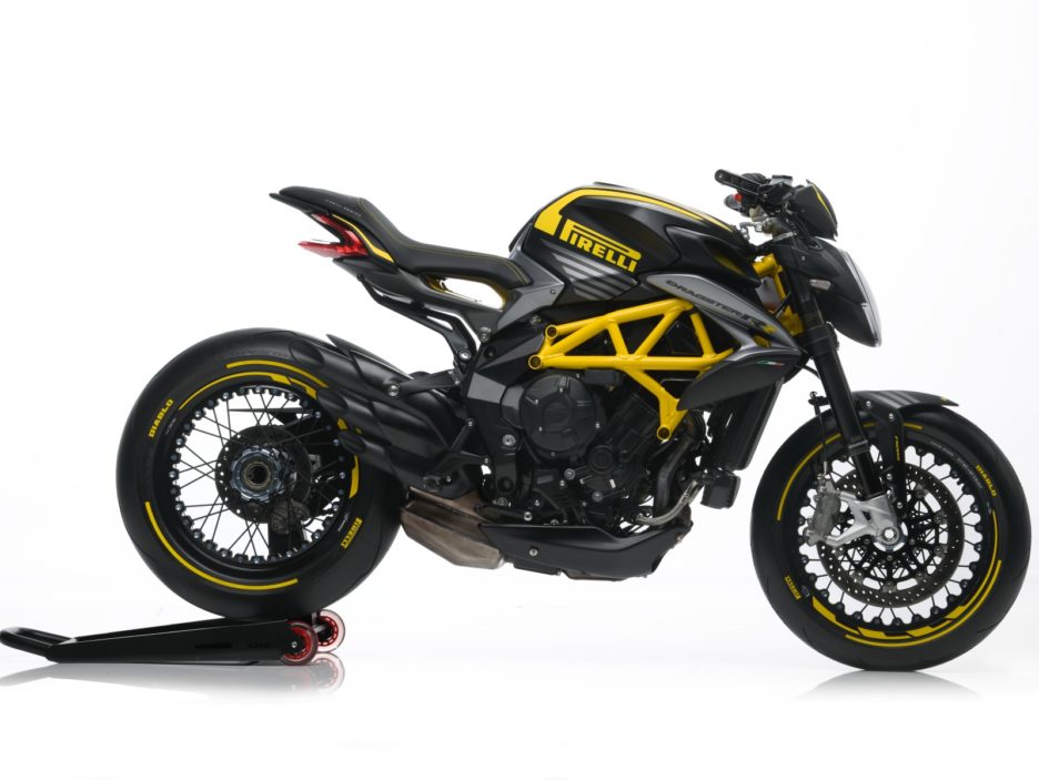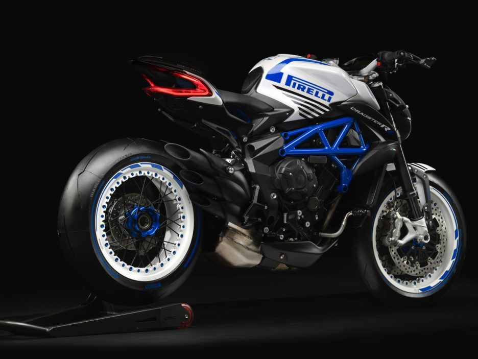 La versione Pirelli si distingue dalle MV Agusta Dragster 800 RR “normali” per il paraserbatoio e il cupolino sviluppati con una gomma formulata appositamente dai tecnici del dipartimento Ricerca e Sviluppo Pirelli per assicurare una maggiore resistenza a graffi, sfregamenti e agenti atmosferici e chimici.