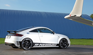 Normalmente quando si parla di tuning lo si fa per elaborazioni create da singoli tuner specializzati, anche se ogni tanto, come in questo caso, più elaboratori uniscono le loro forze e conoscenze per realizzare dei lavori ancora più completi.Questa Audi TT RS, ad esempio, è stata tuneata, insieme, da PP Performance e Cam Shaft.Il primo si è occupato dei ritocchi meccanici, il secondo ha pensato, invece, alle modifiche estetiche della coupé dei Quattro Anelli.Upgrade potente per il 2.5 TFSISotto il profilo meccanico PP Performance ha modificato l’Audi TT RS attraverso l’installazione di un intercooler, modifiche all’impianto di scarico, catalizzatore a 200 celle, una nuova bombola di combustibile e una nuova frizione, così come anche all’impianto frenante sono stati riservati freni in carboceramica.Il risultato è un notevole incremento di potenza per il 5 cilindri turbo TFSI da 2,5 litri che, dai 340 CV originali, passa ora a 470 CV totali con una coppia motrice di 650 Nm.Abito da sera firmato Cam ShaftL’abito da sera di questa Audi TT RS, elaborato da Cam Shaft, è formato da uno splitter aerodinamico per il paraurti anteriore, dal cofano in fibra di carbonio, calotte degli specchietti retrovisori, alettone e diffusore in carbonio.Inoltre il tuner tedesco ha avvolto alcune zone della carrozzeria con una pellicola in nero opaco. I cerchi rimangono quelli originali anche se sono stati personalizzati con una rifinitura in nero lucido.