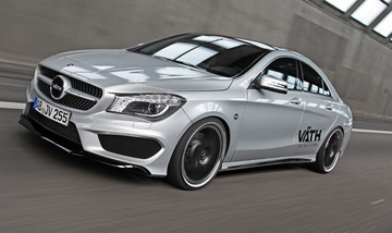 Il preparatore tedesco Vath ha presentato una nuova elaborazione della berlina compatta di Casa Mercedes, la Classe CLA.Rispetto al tuning precedente (vedi la gallery) questo lavoro è stato perfezionato e reso ancora più aggressivo (per meccanica e aerodinamica), tutto spostato, insomma, sul lato sportivo.Body kit aerodinamicoStando a quanto dichiarano da Vath, il nuovo kit per la Mercedes CLA – completo di splitter anteriore in carbonio e spoiler posteriore – le farebbe ottenere un coefficiente aerodinamico di 0,23 Cx.Due step di potenza, 265 o 245 CVPer quanto riguarda la meccanica le novità riguardano una ottimizzazione dell’elettronica e l’installazione di un sistema di scarico sportivo sviluppato appositamente e un nuovo filtro dell’aria.Tutto ciò può essere installato spendendo 4.950 euro con un risultato totale di 265 CV (a fronte dei 208 CV originali), la coppia sale, invece a 420 Nm.La velocità massima della Mercedes CLA 250 by Vath è di 250 km/h mentre l’accelerazione da 0 a 100 km/h avviene in 5,9 secondi.Per chi si accontenta, poi, Vath offre un kit meccanico più “sobrio” che innalza la potenza della CLA a 245 CV e 390 Nm di coppia, in questo caso per 940,10 euro. Con questa opzione si può abbinare anche un terminale di scarico che da un miglior sound alla CLA, per ulteriori 1.249,50 euro.SospensioniUn altro punto su cui Vath si è concentrato è il reparto sospensioni. Su questo tuning si possono infatti installare molle che ribassano l’altezza della Mercedes CLA tra 20 e 65 mm. La durezza della sospensione, poi, potrà essere modificata per adattarsi al tipo di fondo stradale. Il costo di questa soluzione tecnica è di 3.546,20 euro.Impianto frenante464,10 euro è invece la somma da pagare se si vogliono tuneare anche i freni con tubi in acciaio flessibile e liquido Castrol SRF. Il sistema frenante è nascosto dietro cerchi in alluminio da 20 pollici con pneumatici 225/30 ZR20 all’anteriore e 265/25 ZR20 al posteriore.AbitacoloAll’interno dell’abitacolo la Mercedes CLA di Vath può essere dotata di un volante sportivo in pelle dal costo di 1.297,10 euro e un tachimetro tarato fino a 300 km/h che costa, invece, 1.535,10 euro. Per finire disponibili anche i tappetini Vath (226,10 euro).