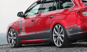 Non è sicuramente uno dei nomi più noti del mondo del tuning, ma a giudicare da questo lavoro di chirurgia estetica sulla nuova Skoda Superb station wagon 2013, questo tuner tedesco di creatività e esperienza ne ha da vendere.Livrea bicolore in rosso/grigioMa questa Skoda Superb by OK-Chiptuning oltre a sfoggiare una livrea speciale, ha subito anche modifiche meccaniche che mettono un po’ di pepe alla familiare ceca.Esteticamente OK-Chiptuning ha optato per una livrea bicolore con le tonalità grigio-rosso che ben si abbracciano l’una con l’altra dandole un aspetto minaccioso.Cerchi “rubati” all’Audi A6 e sospensioni regolabiliAltra novità riguarda il reparto ruote, con splendidi cerchi in lega da 20 pollici, prestati direttamente dalla cugina premium Audi A6. Ad avvolgerli ci sono pneumatici Pirelli Z-Nero da 235/35 ZR20.Il tuner, inoltre, ha messo mano anche alle sospensioni, montando una nuova soluzione coilover (regolabile) firmata H&R con la possibilità di montare un inedito kit stabilizzatore.Upgrade di potenza per il 2.0 TDI Per quanto riguarda, infine, la meccanica, il 2.0 TDI della Skoda Super by OK-Chiptuning è stato ottimizzato e la potenza portata a 210 CV e 435 Nm di coppia, a fronte dei 170 CV e 350 Nm di coppia della versione di serie.Ritoccata anche l’elettronica del cambio DSG che dispone, ora, di una risposta ancora più rapida.