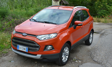 La EcoSport – primo tentativo della Ford di entrare nel mercato europeo delle piccole SUV – è un’auto globale: realizzata sullo stesso pianale (allungato) della Fiesta ma assemblata in India, è molto apprezzata in Sudamerica. In Brasile è addirittura la Sport Utility più venduta.Il motore 1.0 Ecoboost a benzina montato dalla protagonista della nostra prova su strada è, a nostro avviso, il più adatto per questa vettura oltre che l’unico della gamma (che comprende anche due 1.5: un benzina da 112 CV e un diesel TDCi da 90 CV) a poter fare davvero la differenza in un segmento ricco di proposte interessanti.FunzionalitàAlla voce “praticità” la Ford EcoSport non è molto convincente: chi si accomoda dietro ha infatti pochi centimetri a disposizione delle gambe e il bagagliaio (333 litri che diventano 1.238 quando si abbattono i sedili posteriori) potrebbe essere più capiente quando si viaggia con tutti i sedili occupati. Il portellone incernierato lateralmente (che, come sulle 4×4 di qualche anno fa, ospita la ruota di scorta), poi, non è il massimo della comodità: per poterlo aprire bisogna avere tanto spazio dietro.La dotazione di serie è completa (autoradio CD/MP3 con sei altoparlanti e Bluetooth, climatizzatore automatico, cruise control, fendinebbia e sensori di parcheggio posteriori) mentre le finiture potrebbero essere più curate: gli assemblaggi dei pannelli della carrozzeria presentano qualche imperfezione e la plancia (pur potendo vantare un design moderno simile a quello della Fiesta) è realizzata con plastiche rigide ma robuste.ComfortLa Ford EcoSport è perfetta per girare in città: merito della posizione di seduta rialzata che consente di dominare la strada e di un climatizzatore potentissimo che impiega pochi secondi a raffreddare (o a riscaldare) l’abitacolo.Le sospensioni dalla taratura soffice (che reagiscono in maniera brusca solo in caso di sconnessioni molto pronunciate) se la cavano egregiamente ma alle alte velocità bisogna fare i conti con numerosi fruscii aerodinamici e con un abitacolo non molto insonorizzato.Piacere di guidaSenza il motore 1.0 Ecoboost la Ford EcoSport perderebbe molti punti in classifica: questo propulsore turbo a tre cilindri da 125 CV e 170 Nm di coppia ha una cilindrata contenuta che consente di risparmiare sull’assicurazione RC Auto ed è, soprattutto, molto elastico.Inizia a spingere forte già sotto i 1.500 giri ma potrebbe far storcere il naso a chi cerca la vivacità visto che salendo di regime non è altrettanto brioso: lo dimostra anche il fatto che impiega ben 12,7 secondi per accelerare da 0 a 100 chilometri orari.La Ford EcoSport, insomma, è un mezzo più adatto ad un uso turistico che sportivo: lo dimostrano il cambio (contraddistinto da una leva maneggevole che si impunta solo nella guida aggressiva) e lo sterzo, non molto sensibile.SicurezzaAlla buona dotazione di sicurezza (airbag frontali, laterali, a tendina e per le ginocchia, ESP e controllo di trazione) si aggiunge una buona visibilità. I freni potrebbero essere più potenti negli arresti bruschi mentre nelle curve prese a forte velocità si può sempre contare sull’aiuto (a volte un po’ troppo invadente) dei controlli elettronici.EconomiaLa Ford EcoSport 1.0 costa 20.000 euro – un prezzo basso per la categoria – e ha una garanzia di due anni. Eccellenti i consumi: i dati dichiarati del propulsore Ecoboost recitano 18,9 km/l e guidando con il piede leggero si riesce a stare senza problemi sopra quota 15.