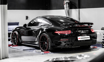 PP-Perfromance è il preparatore tedesco di Weissbach specializzato in “doping” meccanici di vetture già di per sé fuori dal comune in quanto a potenza… le supercar.In questo caso l’oggetto del desiderio passato per le officine del tuner tedesco è una vera e propria icona delle super sportive, con più di 50 anni di storia alle spalle e considerata come punta di diamante di Zuffenhausen, la Porsche 911 Turbo.Ovviamente, di serie, questo bolide non ha certo bisogno di una “spinta in più”, ma quando la sete di record è insaziabile PP-Performance ci mette del suo.Dopo un intervento chirurgico molto delicato la Porsche 911 Turbo by PP-Performance esce dalla “sala operatoria” più forte che mai e vanta numeri da record, è proprio il caso di dirlo.Tanto per cominciare il sei cilindri da 3,8 litri, che di serie eroga 520 CV (560 CV sulla Turbo “S”) è stato potenziato (con un kit meccanico del valore di 11.999 Euro) fino a 673 CV con una coppia massima di 820 Nm (660 Nm di serie).Il tutto, naturalmente, per rendere la Noveunouno Turbo più veloce che mai: a questo proposito i numeri parlano chiaro. A lavoro fatto la 911 Turbo modificata migliora il tempo sullo scatto da 0 100 di quasi un secondo (un’infinità) fermando il cronometro sui 2,5 secondi, come una Bugatti Veyron, e raggiunge i 200 km/h, da ferma, in 8,2 secondi (11,1 sec. la versione di serie).