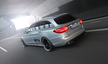 Il preparatore tedesco Väth dota la station wagon della Stella, la Mercedes C 180 Station Wagon, di un body-kit denominato V18.La familiare tedesca si trasforma così in una sportiva dal carattere aggressivo.Il look viene “pompato” grazie allo splitter anteriore, allo Spoiler posteriore e a un inedito Estrattore d’aria posteriore – tutto rigorosamente in Carbonio.Il retrotreno è dominato, poi, dal nuovo impianto di scarico sportivo a quattro vie, realizzato in acciaio inox.Il tuning estetico viene poi coronato da un set di quattro cerchi in lega neri da 20 pollici.Upgrade meccanico per il 1.6 a benzinaMa Väth pensa anche a potenziare la parte meccanica della Mercedes C 180 Station Wagon portando il 1.6 turbo a benzina a 92 CV e 300 Nm di potenza (dai 156 CV e 250 Nm originali).Anche al livello di chassis ci sono delle novità: l’assetto è stato ribassato di 30 mm mentre per quanto riguarda l’abitacolo le novità riguardano i nuovi tappetini in velluto nero e una inedita pedaliera in alluminio.