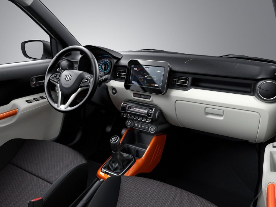 La dotazione di serie della Suzuki Ignis iCool comprende: servosterzo elettrico EPS, alzacristalli elettrici anteriori, chiusura centralizzata con telecomando integrato nella chiave, climatizzatore manuale, 4 altoparlanti (2 ant. e 2 post.) e antenna, sistema multimediale con display touch screen, radio, USB MP3, connettività smartphone, bluetooth e comandi al volante, telecamera posteriore, display multifunzione (orologio, temperatura esterna, consumo di carburante, velocità media, driving range, posizione e cambio modalità marcia, pressione gomme), segnalatore acustico luci accese e chiave inserita, segnalatore (acustico e luminoso) portiere aperte, indicatore (acustico e luminoso) riserva carburante, segnalatore (acustico e luminoso) mancato aggancio cintura di sicurezza (lato guidatore e lato passeggero), segnalatore luminoso mancato aggancio cinture di sicurezza posteriori, volante a 3 razze regolabile in altezza con comandi audio, luci abitacolo anteriore (3 posizioni), aletta parasole con specchietto illuminato e portabiglietti (solo guidatore), tasche portaoggetti portiere anteriori, portabicchieri anteriori (2), portabicchieri posteriori (1), portabottiglie (2 porte anteriori – 2 porte posteriori), presa elettrica da 12V nella consolle centrale, sedili rivestiti in tessuto con impunture Orange o Titanium, sedili riscaldabili anteriori, sedili posteriori scorrevoli indipendenti, sdoppiati 50:50, con poggiatesta, tasca portaoggetti schienale sedile passeggero anteriore, sedile guidatore regolabile in altezza, consolle centrale BiColor Black&White, rivestimenti porte BiColor Black&White, vaschetta portaoggetti nel tunnel centrale, tunnel centrale, maniglie porte ant. Orange o Titanium, poggiapiede lato guidatore, maniglie di sostegno passeggero anteriore, cappelliera e pianale bagagliaio, maniglie interne apri porta, griglia anteriore Black, barre al tetto color silver, estensioni passaruota Black, montante anteriore e centrale Black, fari alogeni, fari automatici con sensore crepuscolare, luci diurne di marcia DRL, retronebbia, privacy glass, specchietti retrovisori esterni in tinta, riscaldabili e regolabili elettricamente, tergicristalli anteriori (intermittenza regolabile a 2 velocità e lavavetri), tergicristalli posteriori (intermittenza a 1 velocità e lavavetri), lunotto termico, maniglie esterne in tinta carrozzeria, cerchi da 16” Black con pneumatici 175/60 R16, kit di gonfiaggio/riparazione ruota, sistema “accompagnami”, airbag frontali, laterali e a tendina, ABS con EBD, ESP + TCS, monitoraggio pressione pneumatici, assistenza alla frenata, cinture di sicurezza anteriori con pretensionatore, limitatore di carico e regolabili in altezza, cinture di sicurezza posteriori ELR, attacchi Isofix, sicurezza bambini portiere posteriori, Immobilizer, terza luce stop LED e pedaliera collassabile.