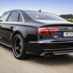 Non è cosa di tutti i giorni, per noi, avere a che fare con una ammiraglia “arrabbiata” del calibro della tedesca Audi A8.Sulle rotte autostradali tedesche, però, è più comune incappare in incontri ravvicinati con questo tipo di incrociatori, a loro agio la dove i limiti non esistono.A fare l’ultima messa a punto della super limousine di Ingolstadt, l’Audi S8, è stato il preparatore teutonico specializzato ABT che ha messo mano, di nuovo (dopo averlo fatto con le RS6 e RS7) sul mastodontico 8 cilindri a V da 4 litri della Casa dei Quattro Anelli.Di serie, ricordiamo, la cavalleria della berlina top targata Audi ammonta a ben 520 CV con una coppia di 650 Nm. Dopo la revisione di ABT i puledri della S8 aumentano notevolmente, fino a 640 CV. Schizza in alto anche la coppia, in questo caso di 780 Nm. Via anche il limitatore, senza il quale si accelera tranquillamente fino a 280 km/h. E per dare un tocco estetico “da battaglia” alla Audi S8, ABT propone grandi cerchi in lega da 20 o 21 pollici a scelta verniciati in nero Mystic attraverso i quali si mettono in mostra gli enormi dischi in carboceramica. Il tutto avvolto da pneumatici da 275/35 R20 o R21.L’assetto è schiacciato a terra, ribassato di 25 mm, e l’impianto di scarico originale è sostituito con l’ABT Muffler System dotato di 4 terminali che diffondono a gran voce l’urlo del V8.