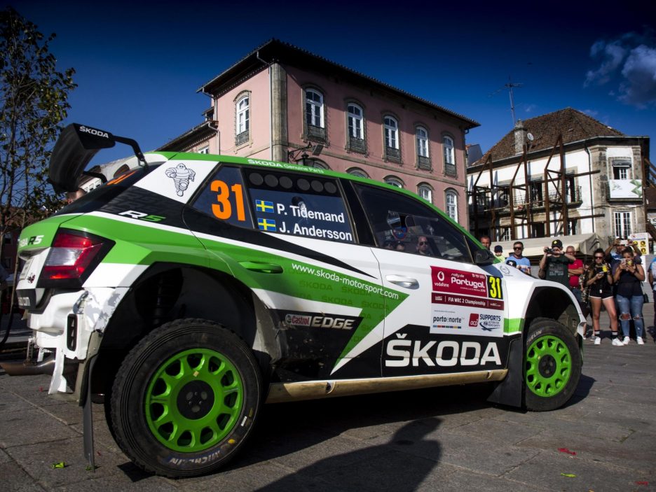 Credits: epa06748287 Pontus Tidemand of Finland drives his Skoda Fabia R5 during day 2 of Rally Portugal 2018, in Matosinhos, Portugal, 18 May 2018. EPA/Nikos Mitsouras