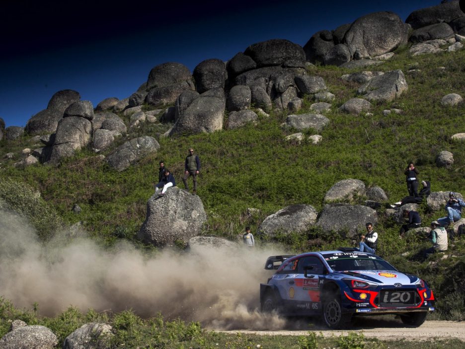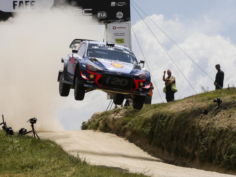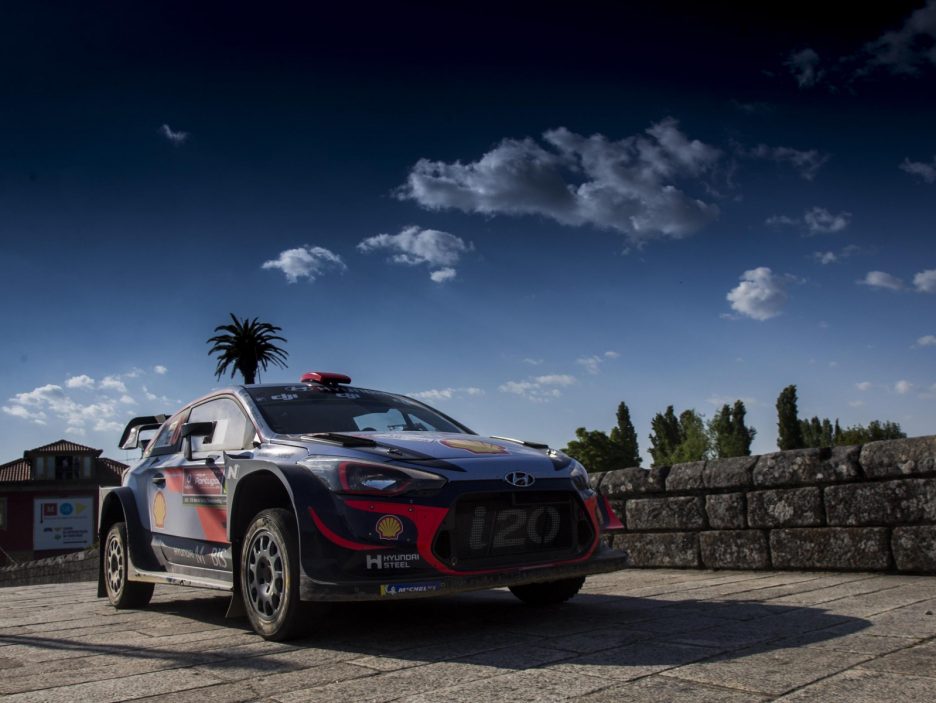 Credits: epa06750754 Daniel Sordo of Spain drives his Hyundai i20 WRC during day 3 of the Rally Portugal 2018, in Matosinhos, Portugal, 19 May 2018. EPA/ANNA KALAGANI