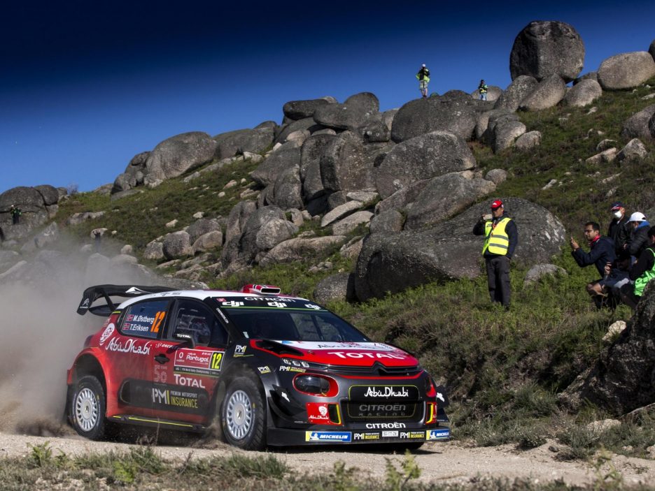 Credits: epa06750632 Mads Ostberg of Norway drives his Citroen C3 WRC during day 3 of the Rally Portugal 2018, in Matosinhos, Portugal, 19 May 2018. EPA/ANNA KALAGANI