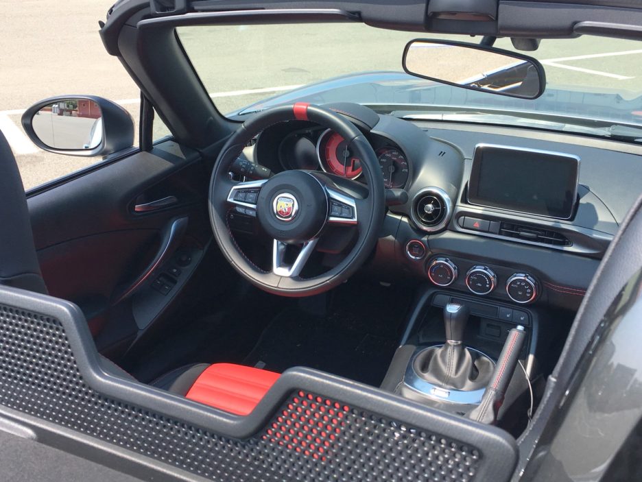 Non male come inizio. L’assetto tuttavia non è rigido come mi immaginavo, anzi: c’è quella giusta quantità di rollio per infondere fiducia al limite del grip (e anche oltre). Anche quando si esagera, tutto avviene in modo progressivo e naturale, e in questo frangente la Abarth fa meglio sia della Fiat, sia delle cugine Mazda. È senza dubbio una delle sportive a trazione posteriore più divertenti che abbia provato di recente.