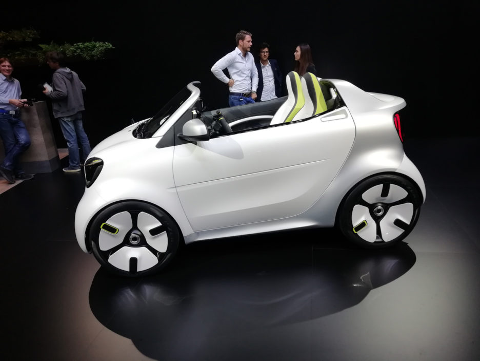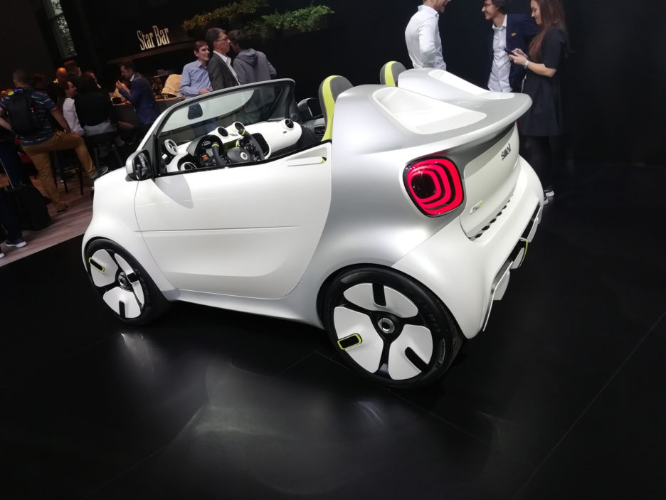 Smart festeggia al Salone di Parigi 2018 i 20 anni di carriera con la forease, una concept elettrica basata sulla fortwo EQ cabrio.
